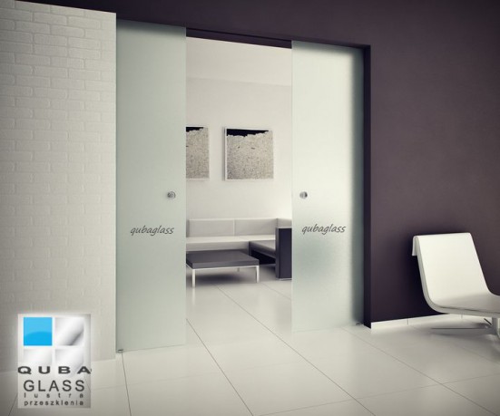 Drzwi przesuwne ze szkła 8 mm, szkło trawione (satynowe) hartowane.