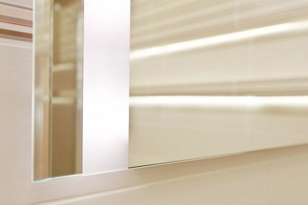 Lustro o grubości 4 mm z dwoma pionowymi matowymi pasami.