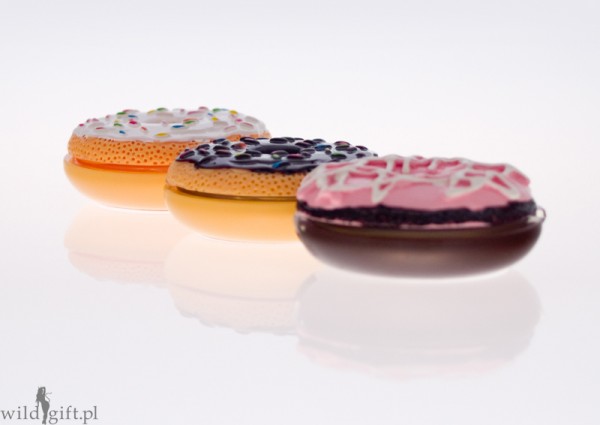 Zamknięte w oryginalnych pudełeczkach błyszczyki w najmodniejszych kolorach będą słodką inspiracją dla jeszcze słodszych pocałunków! Opakowania do złudzenia przypominające smakowite pączki z lukrem skuszą największe zwolenniczki diet i osłodzą każdy dzień.