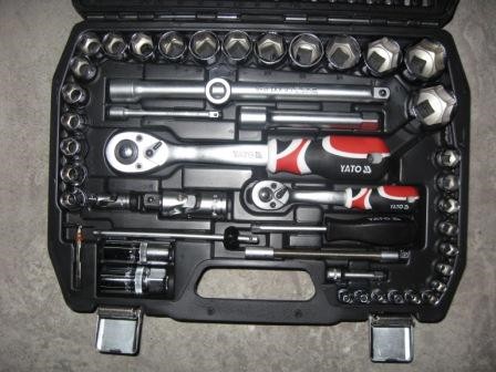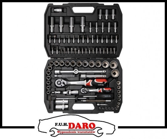 Nasz zestaw składa się z 94 elementów, nasadki wykonane są z wytrzymałej stali narzędziowej, chromowo wanadowej CrV 50BV30. Grzechotki występujące w zestawie wykonane są ze stali CrV 6140 wg najwyższych standardów technologicznych YATO i posiadają 72 zęby. Bity wykonane są z wytrzymałej stali S2. Nasz zestaw idealnie nadaje się do potrzeb profesjonalnych serwisów mechanicznych i samochodowych. Dodatkowo w skład zestawu wchodzą także grzechotki, pokrętło fajkowe i nasadki do świec. Zestaw bardzo wytrzymały przystosowany do odkręcania i przykręcania różnorakich śrub i połączeń.