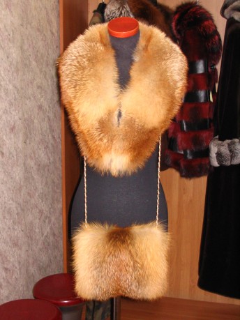 Kołnierz i mufka z lisa rudego. Kołnierz posiada możliwość dopięcia do kurtki lub