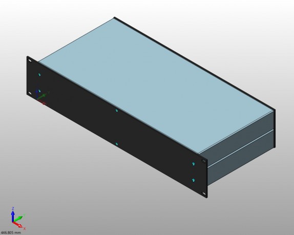 Panel przedni(3mm≠) oraz tylni(1.5mm≠) są wykonane z blachy aluminiowej lakierowany proszkowo na czarno.