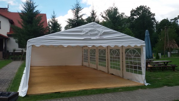 Namiot możemy zamontować na trawie, na kostce brukowej, betonie, lub z podłogą w opcji.