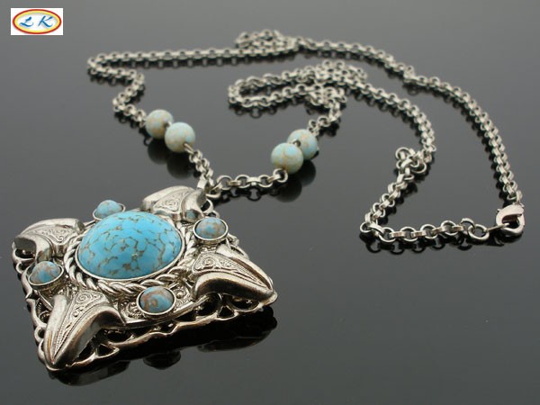 Ozdobiony dużą i piękną zawieszką z kamieniem naturalnym - TURKUSEM.