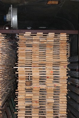 Suszenie odbywa się metodą komorową, przy użyciu wentylatorów zapewniających cyrkulację powietrza oraz kaloryferów dużej mocy dla utrzymania temperatury. Komora jest wyposażona w kominy wentylacyjne by woda wydostająca sie z drewna mogła być oprowadzana. Zasilanie w ciepło zapewnia sterownik firmy MODERATOR który zasilany paliwem złożonym ze zrębków nieprzerwanie podtrzymuje temperaturę. Technologia suszenia zapobiega odkształceniom drewna i nierównomiernemu pozbywaniu się wody. Temperatura jest tak dostosowana by woda niezwiązana w materiale stopniowo była transportowana od wewnętrznych do zewnętrznych warstw i usuwana na zewnątrz a nie zatrzymywana w drewnie w skutek uściślania struktury. Suszenie trwa od kilku dni do czternastu dni w zależności od grubości materiału. Jesteśmy w stanie uzyskać drewno o 6% zawartości wody w suchej masie.