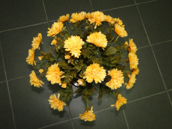 bukiet chryzantema x 24 z jesiennym listkiem w kilku pastelowych kolorach,może być elementem stroika jesiennego lub samodzielną ozdobą grobu na wszystkich świetych