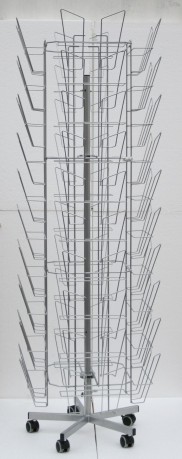 Stojak obrotowy na kółkach. Do ekspozycji czasopism lub książek.