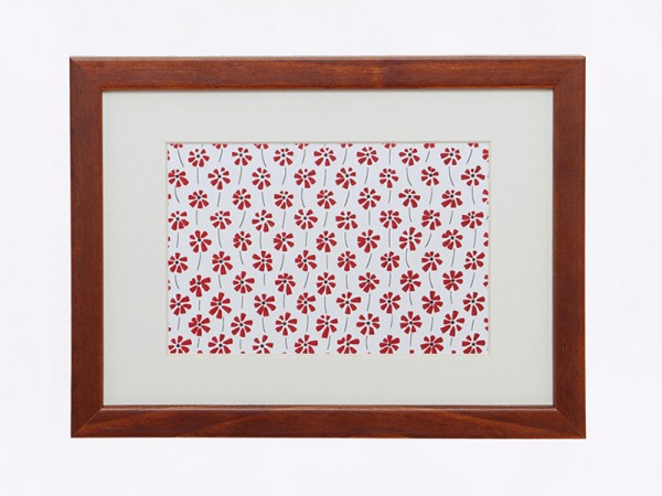 Ozdoba na ścianę. Drewniana rama w kolorze brązowym. Grafika - czerwone kwiaty na białym tle. Bardzo ładna dekoracja ścienna pasująca zarówno do pokoju, do kuchni i do sypialni.