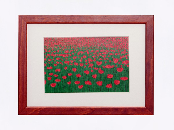 Obrazek na ścianę - maki na zielonej łące. Dekoracja ścienna, do postawienia również na komodzie, biurku, stoliku. Bardzo ładny dodatek do domu.