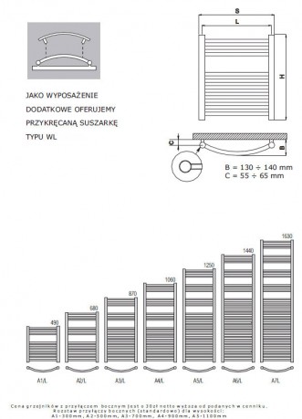 Grzejnik łazienkowy Radeco model: A/L o wymiarach: 490 x 435 w kolorze białym