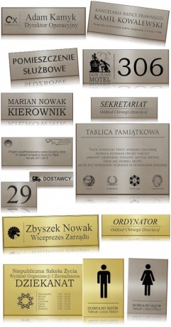 Wykonujemy też tablice grawerowane z podkładem z pleksi.