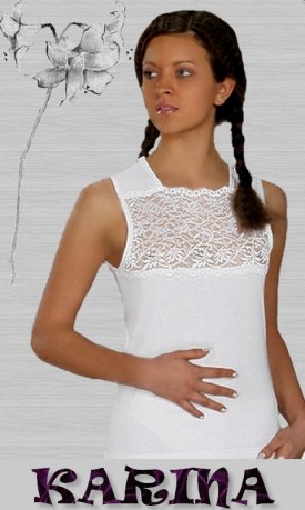 Koszulka na szerokim ramiączku- bawełna z lycry. Koronka z dodatkiem lycry.