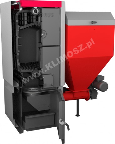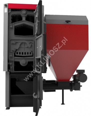 kocioł żeliwny dwupaleniskowy z palnikiem rynnowym na węgiel brunatny, miał węglowy, pelety, eko-groszek, dodatkowo w ręcznym palenisku drewno, węgiel