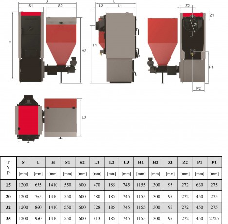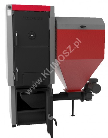 kocioł żeliwny dwupaleniskowy z palnikiem rynnowym na węgiel brunatny, miał węglowy, pelety, eko-groszek, dodatkowo w ręcznym palenisku drewno, węgiel