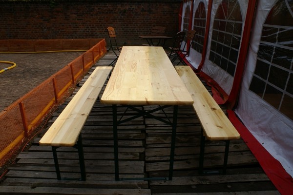 W komplet zestawu wchodzi stół i dwie ławeczki.