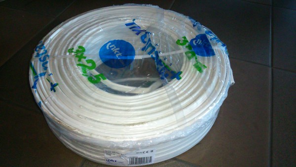 Przewód elektroenergetyczny YDYp 3x2,5, do układania na stałe, z żyłami miedzianymi jednodrutowymi, o izolacji i powłoce polwinitowej, płaski, z żyłą ochronną zielono-żółtą.